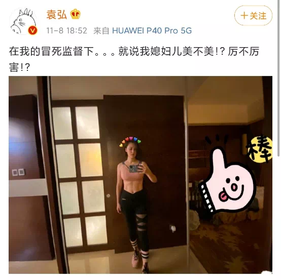 给张歆艺买健身器材,督促健身,前阵子刚微博转发妻子腹肌照,直接夸“我媳妇儿厉不厉害?!”
