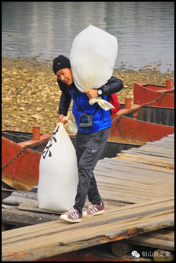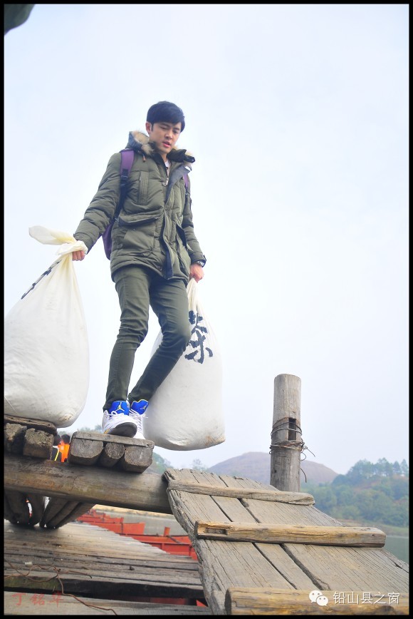 帅哥把茶叶搬上岸