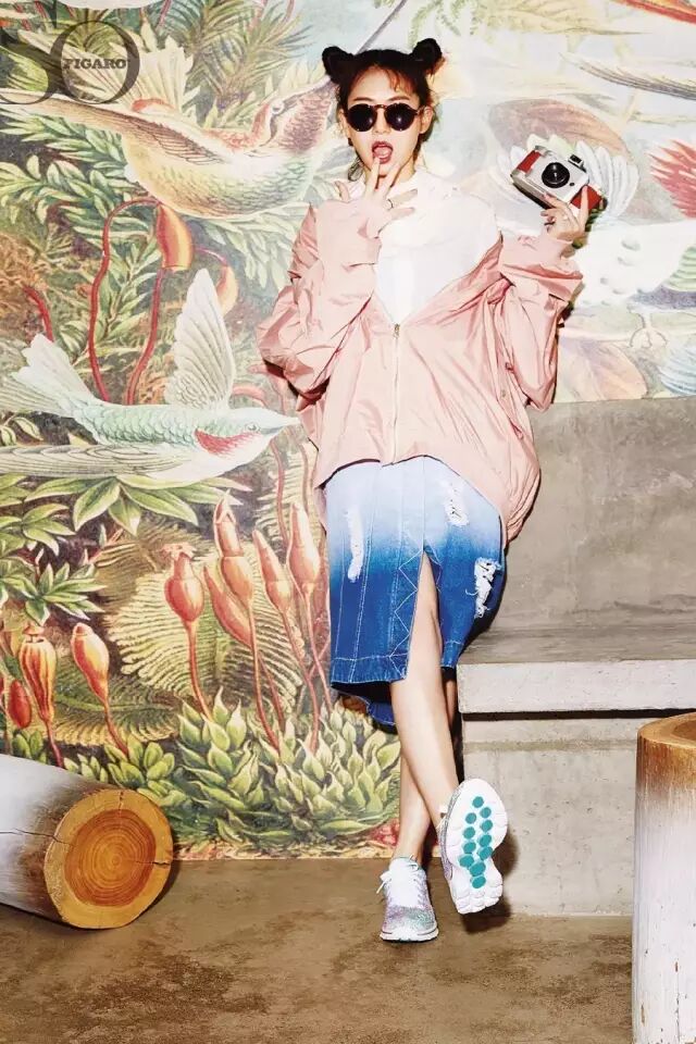 戚薇在魔都最炫酷的餐厅进行拍摄,拿起身边的复古相机爱不释手。梳着俏皮丸子头的她,眼戴墨镜、脚踩炫彩印花运动鞋,看起来随时都准备好即刻出发去旅行,边走边拍记录每一个精彩时刻。