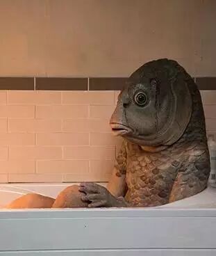 准确来讲,是多数情况下不露脸,而是戴着一个鱼头面具!