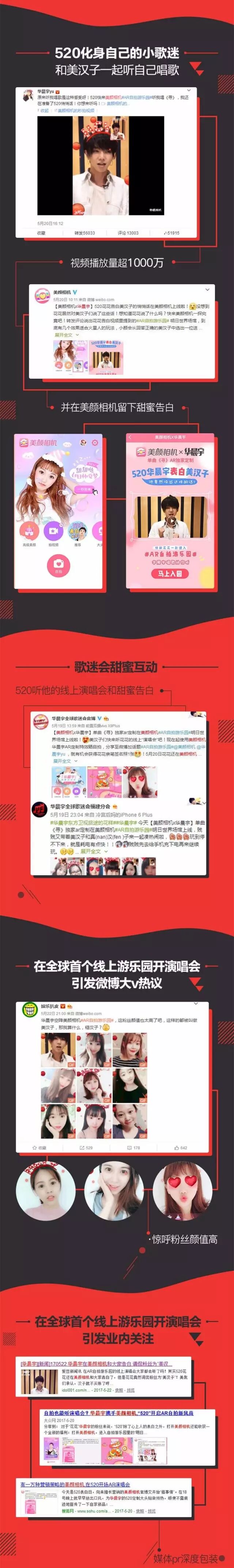 而美颜相机和华晨宇的这波合作吸引了近100万的粉丝来线上听歌!这个活动不仅满足了粉丝们想和偶像合唱的小心思,还让花花的人气得到了进一步的验证!这场嗨爆互联网的“线上演唱会”就是从这里开始的: