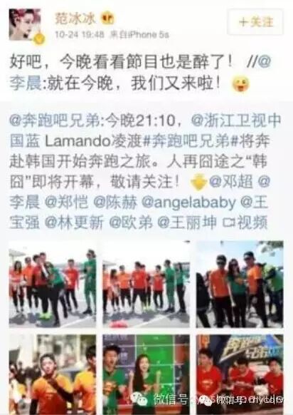 十月份开始,范冰冰开始以跑男话题和李晨互动