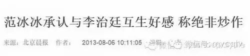 好了,记住2014年8月这个重要的时间点,它是李治廷和范冰冰恋情有了实质性爆料的时间,从卓伟有图有真相的爆料这天起,终于可以说这段恋情是坐实了。可是自从8月份之后,这段恋情却一下子就走向下坡路。