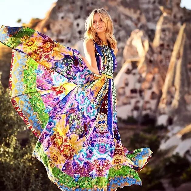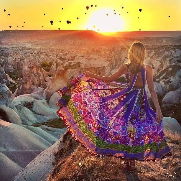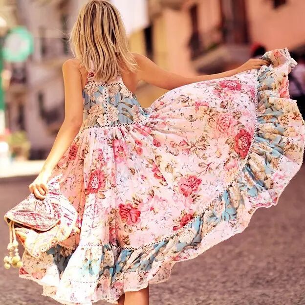 多彩的风光,应配上绚烂的服装,而花裙当之无愧是旅行中最佳彩色单品。大裙摆的花裙随风起舞,在景物中央,更加塑造你独有的女人味哦。