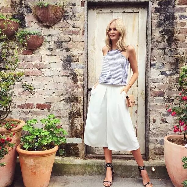 白色还可以与其他特色单品搭配出任意想要的风格。当你在旅行中买到一条花裤子,却不知道怎样搭配的话,毫不犹豫的选择白色吧。