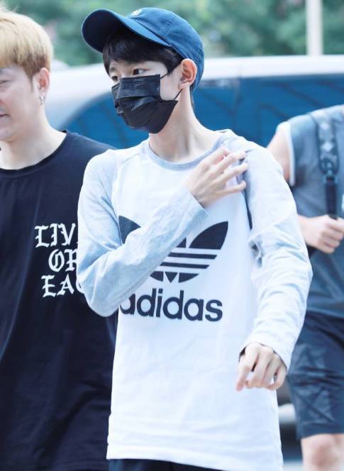 他穿着长袖T恤,戴着帽子、口罩,捂的严严实实。