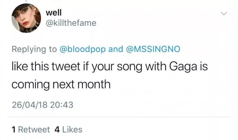 接下来是两位女歌手LadyGaga和Rihanna。她俩都说要做新歌了。歌迷们表示,他们不想再等了!