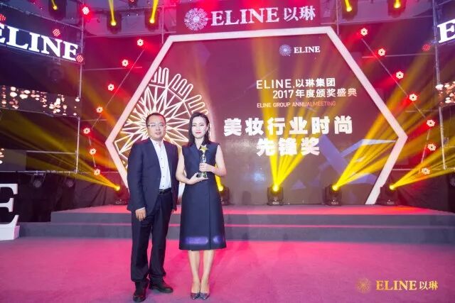 在“女王的盛宴”上,有一个重要奖项见证了ELINE的实力:深圳时尚产业协会的秘书长胡泽宇向以琳集团颁发“时尚行业先锋奖”,以琳集团创始人吴丽媛吴总代表集团上台领奖。
