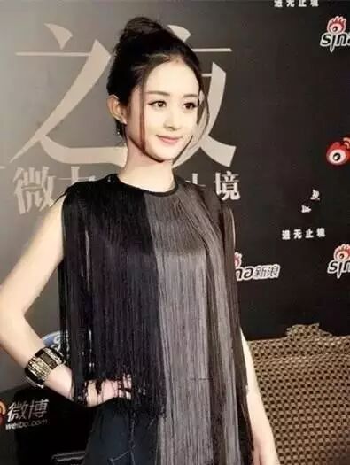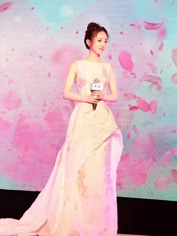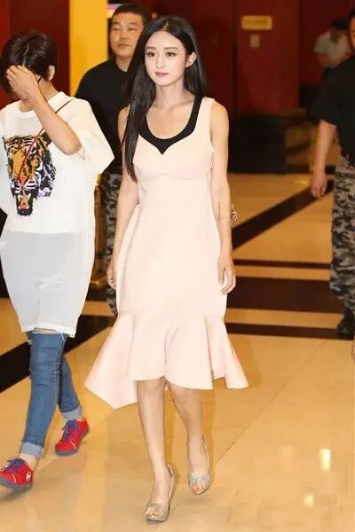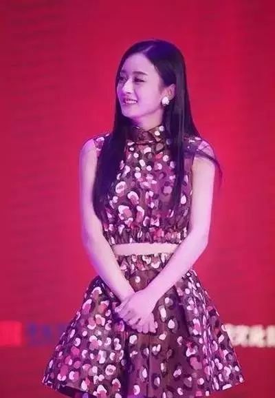 赵丽颖穿了一条印花雪纺A字连衣裙,娇萌无比。