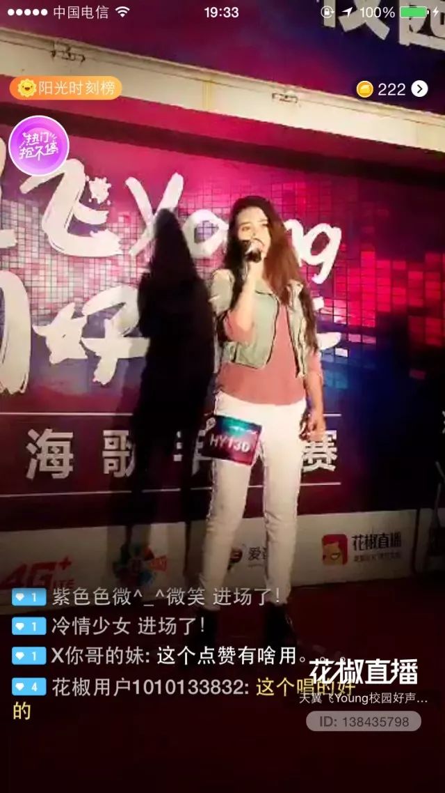 如果你没能亲临现场感受2017天翼飞Young校园好声音上海歌手大赛的火爆氛围,那么你也可以通过花椒直播的视频网站来观看我们的比赛,花椒主播亲临现场,为你带来视听盛宴!