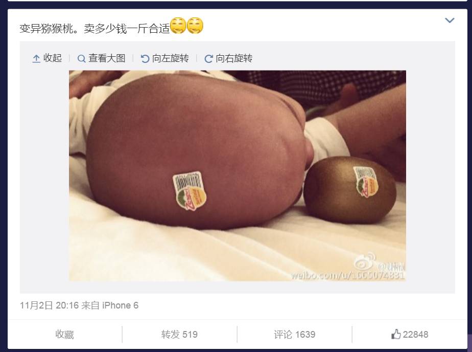 看这好好一个大头儿子,硬被老妈拍成了“变异猕猴桃”,还问卖多少钱一斤合适。心疼吴所谓的网友直呼,这只能论个卖啊,要是论斤还得切,这么残忍的活谁下得去手啊。
