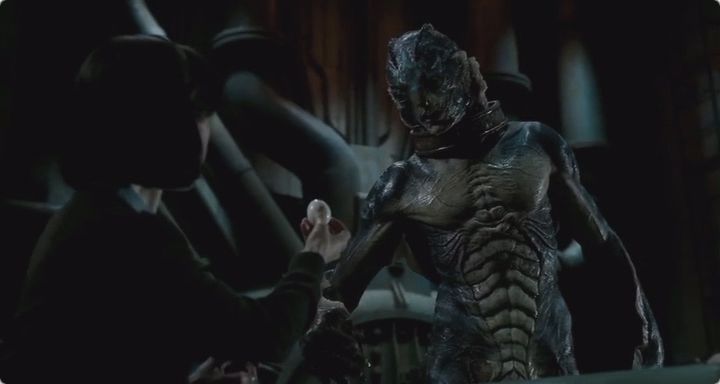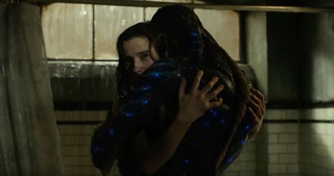 被人类狠狠虐待兼囚禁的鱼人,会在愤怒的驱使下伤害所有人,却唯独愿意接近女主,陪伴她,拥抱她:
