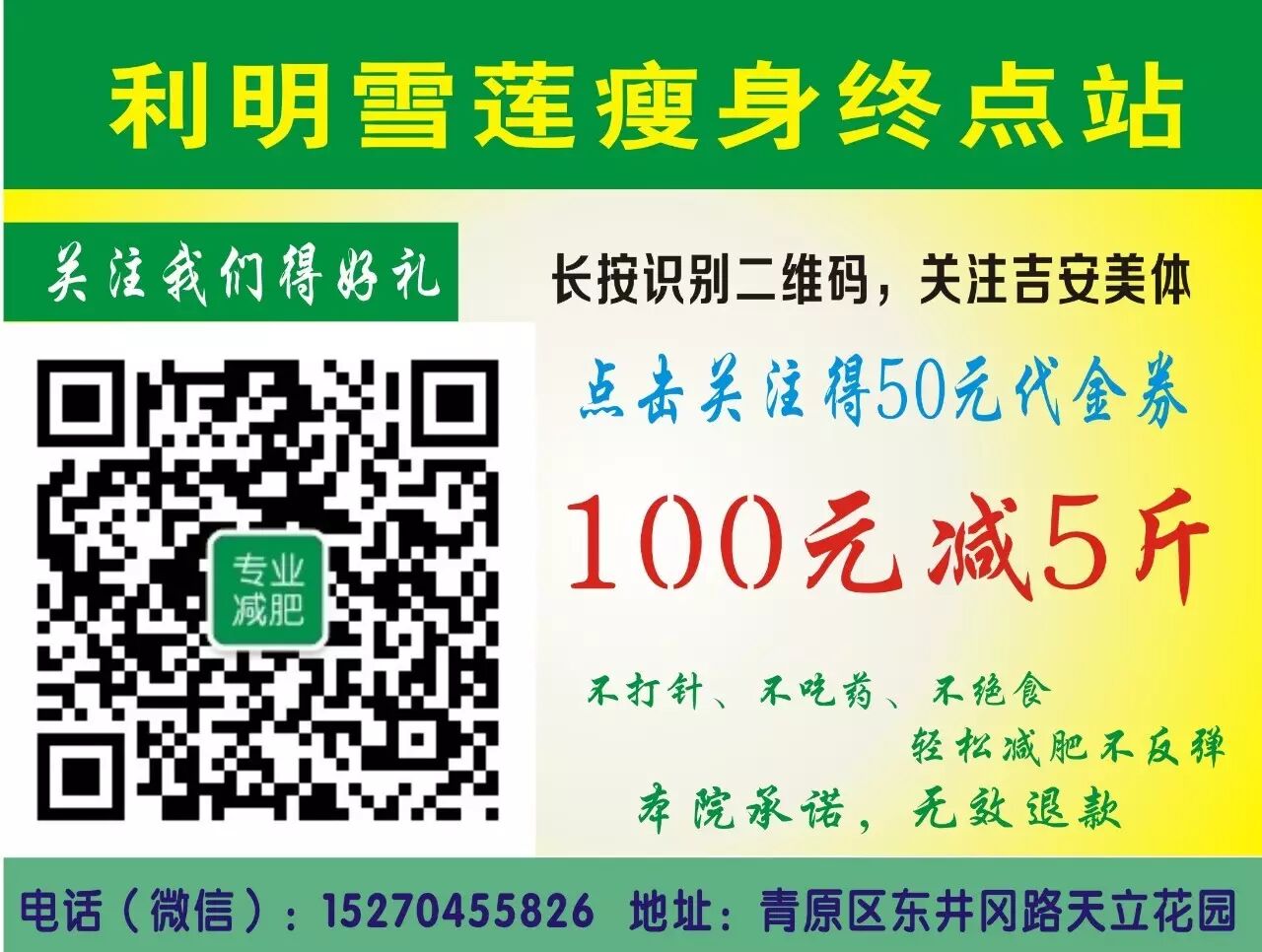 更多的减肥问题请关注公众号或进店咨询,利明雪莲瘦身终点站为您解决你多余肉肉的烦恼,还你个骄傲的身材