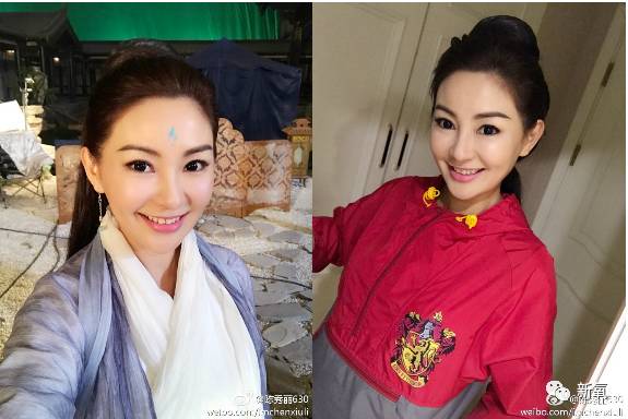 在她微博里经常发自己曾经的角色剧照,陪着现在的大肿脸,这样穿插让人感叹那个曾经灵动的陈秀丽哪去了?