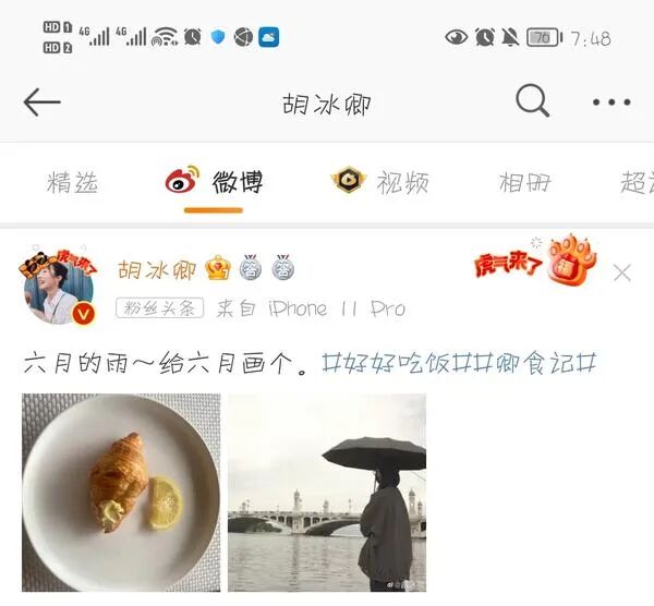 除了演戏,胡冰卿还喜欢在网上冲浪!
