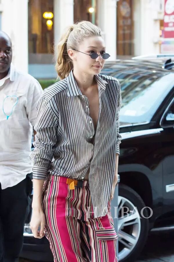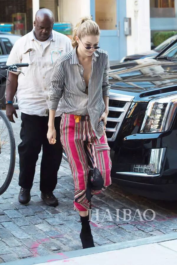 2017年7月30日,吉吉·哈迪德(Gigi Hadid)现身纽约拍摄片场
