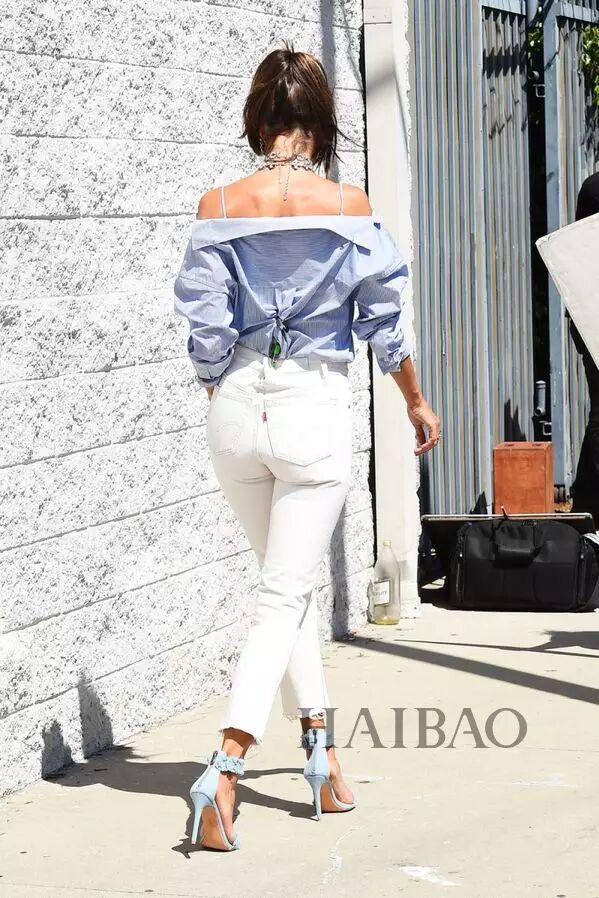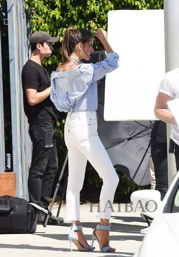 2017年7月29日,亚历山大·安布罗休(Alessandra Ambrosio)现身洛杉矶拍摄片场
