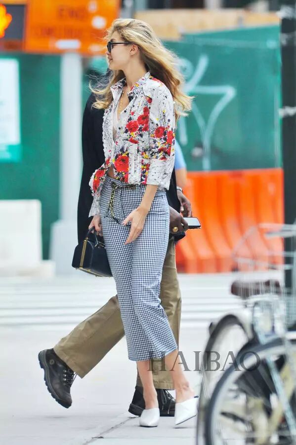 除此之外,好久未见的“混搭女王”西耶娜·米勒 (Sienna Miller) 也给我们带来惊喜,浅蓝色打结衬衫+拼接牛仔裤美得毫不费力,搭配棕色皮鞋洒脱随性,一头闪闪发光的金发更是加分项;最近穿衣渐入佳境的肯达尔·詹娜 (Kendall Jenner) 则将Free The Nipple运动进行到底,真空上阵穿橘红色透视薄衫没在怕;吉吉·哈迪德(Gigi Hadid) 复古单品换不停,短款印花衬衫、格子七分裤轮番上阵,细脚踝在白色猫跟穆勒鞋的映衬下性感又迷人……