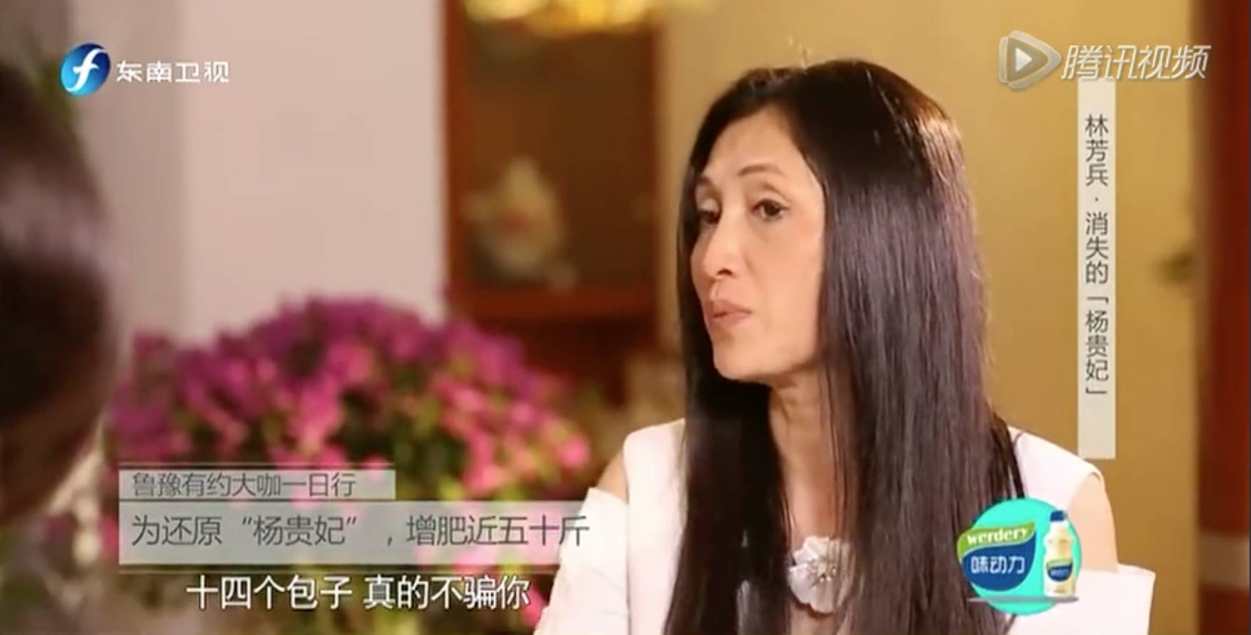 为了从外形和气质上都努力还原传说中杨贵妃肤如凝脂和芙蓉如面柳如眉,林芳兵试过喝营养液——盐水瓶子这么大一瓶,比豆渣还难吃。