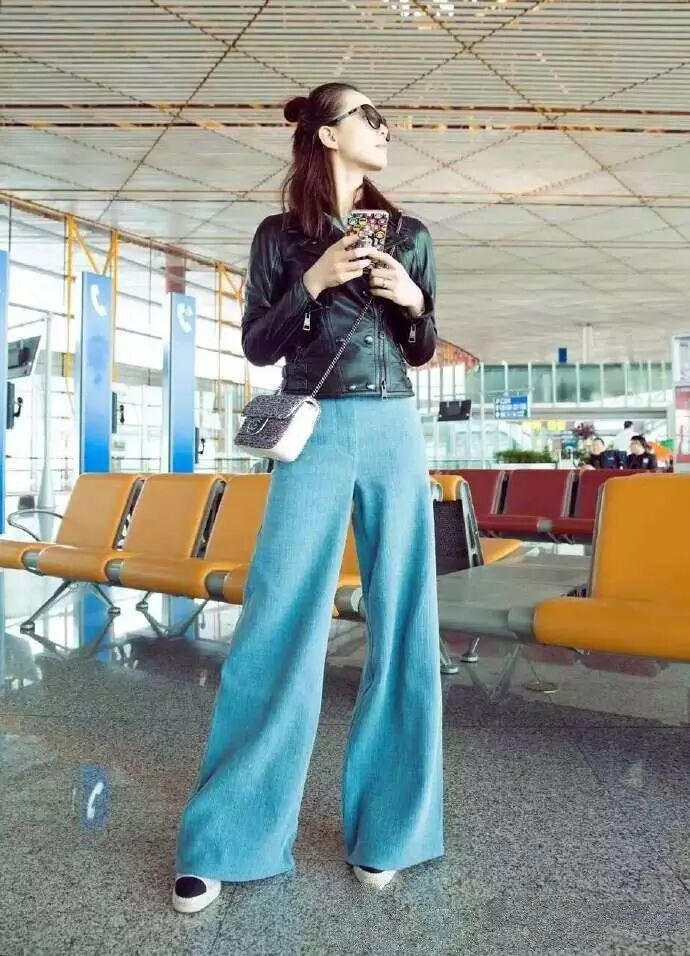 近日,刘诗诗身穿休闲的小皮衣搭配薄荷色的阔腿裤,戴着黑色墨镜,造型大气时髦,出现在公众场合。