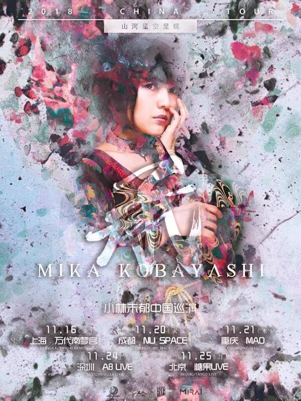 继2017年「Mika Type “起”」巡演之后,2018年Mika type小林未郁将以「Mika Type “承”」,“承”“起”之幕,自11月16日起在上海、成都、重庆、深圳及北京五座城市展开中华区巡演。继续展现Mika Type的精彩内容。