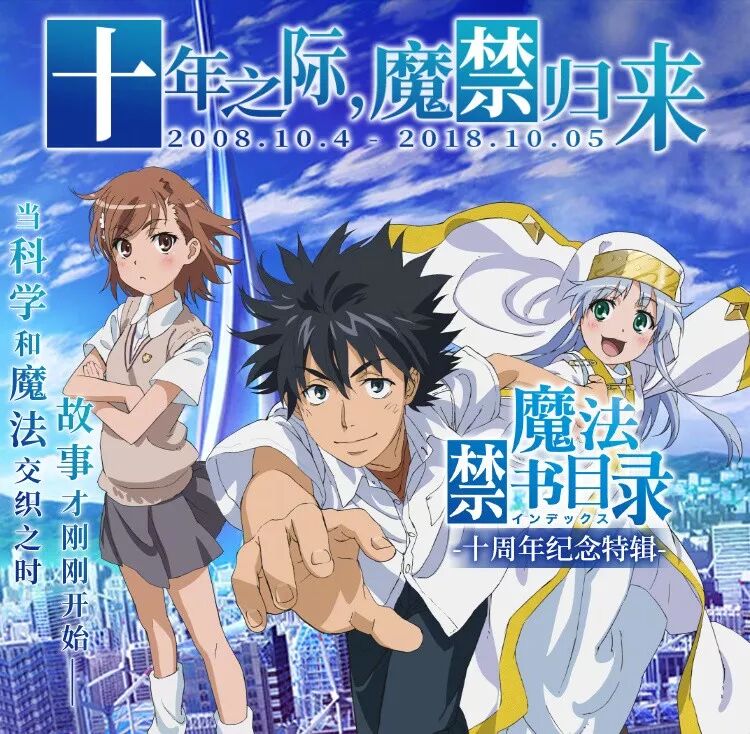 2008年10月4日,《魔法禁书目录》TV动画第一季首播,到如今刚好十年。在这充满意义的时刻,《魔法禁书目录》第三季在10月5日22:30开始放送。