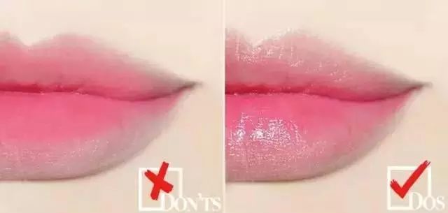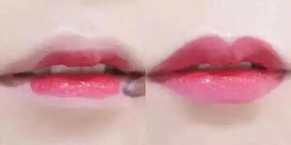 咬唇妆强调唇心色彩浓,越到唇周越泛白。而欧巴唇的着色范围,则在咬唇妆的基础上向唇周自然扩展了2圈儿,色彩铺得更满。