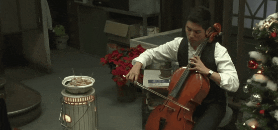 ……讽刺的是,入殓和演奏大提琴有一定程度的相似性。大提琴有些像人,形态婀娜。大提琴手在演奏时需要拥抱这种乐器,充满爱意、深情款款。这和入殓师温柔抱住尸体的动作非常相似。 导演泷田洋二郎