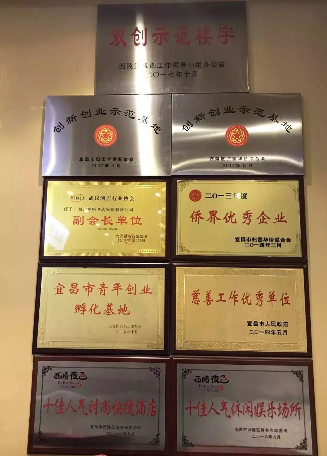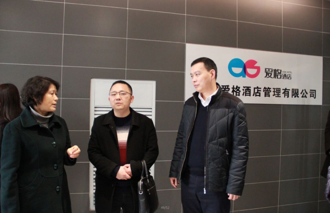 ▲宜昌市侨联党组书记、主席陈红和西陵区委常委、西陵区委组织部长、统战部长文君等一行调研凝聚新天地(爱格酒店)创业园——“爱格酒店”