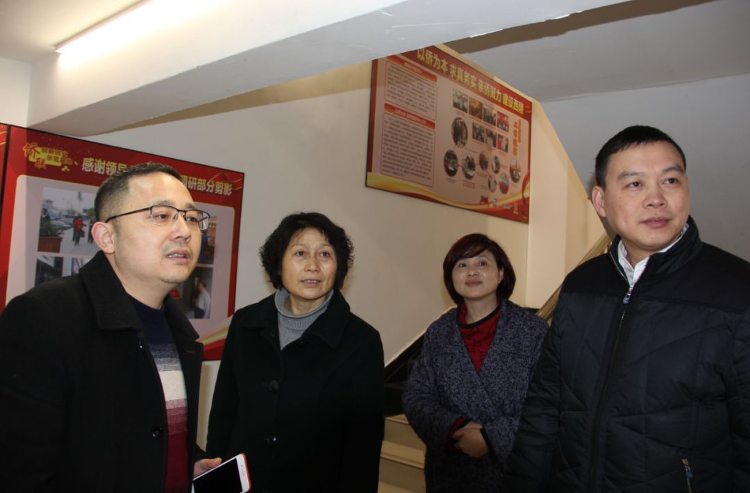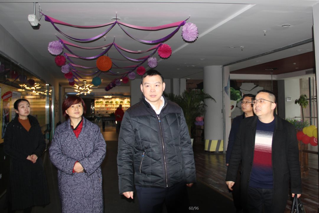 ▲西陵区委常委、西陵区委组织部长、统战部长文君和宜昌市侨联副主席、西陵区委统战部副部长、侨联主席胡华春等一行调研凝聚新天地(爱格酒店)创业园——“优畅party”
