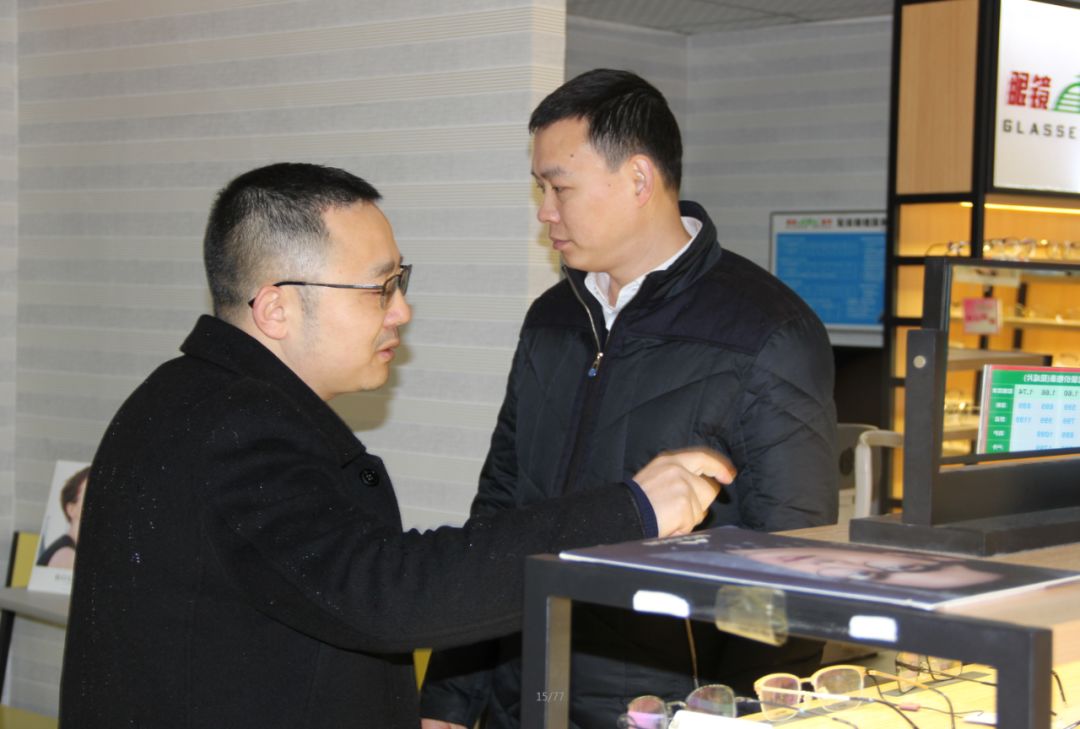 ▲西陵区委常委、西陵区委组织部长、统战部长文君等一行调研凝聚新天地(爱格酒店)创业园——“艾思眼视光”眼镜直通车超市