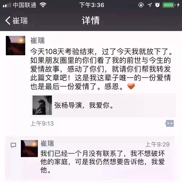 不料这时张扬却把她微信给拉黑了,表示从此一刀两断,姑娘这下闲不住了,开始意淫各种各样的“真爱理论”,一会儿说自己是三毛转世,一会儿说俩人有量子纠缠。