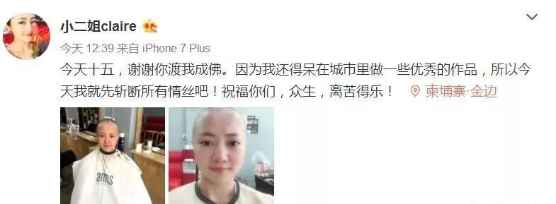 而“佛系”女文青本人,则剪尽了三千烦恼丝。