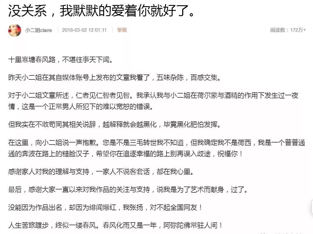张扬在缄默一夜后,终于发了声明,有意思的是,小二姐改了个标题后转发了: