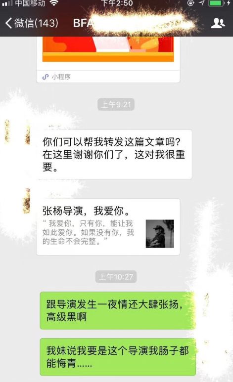 小二姐当了大导演的小三,然后写了篇长长的告白信,把这件事情抖落得天下皆知。