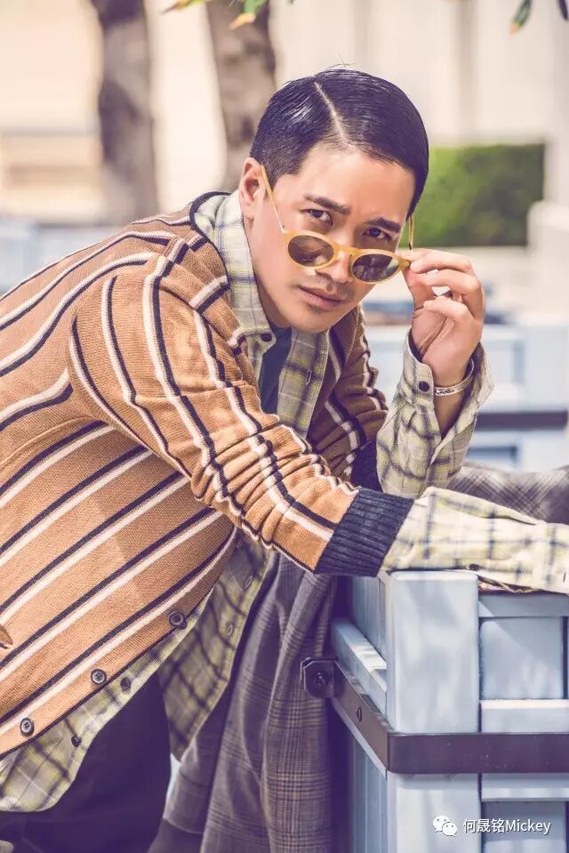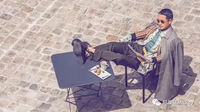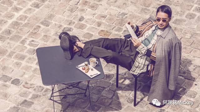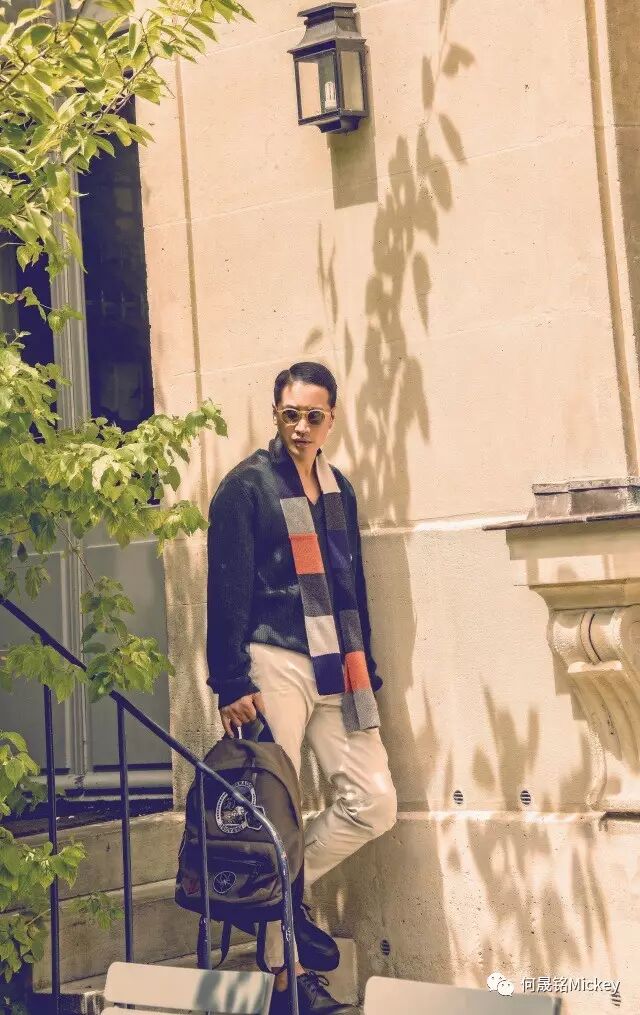 镜头中的何晟铭身着LANVIN 2017早秋系列男装,时而佩戴复古墨镜,格纹衬衫内衬青色T恤,外搭卡其色条纹外套与复古格纹大衣,加上咖啡色长裤及黑色厚底系带鞋,随性大胆的混搭让两种截然不同的态度变得和谐统一;何晟铭时而佩戴茶色墨镜,酒红色拼接夹克搭配斜罗纹修身长裤及黑色运动鞋,夹克上的拼接与长裤的条纹无不体现造型细节,诠释都会精英形象;又时而身着橄榄绿毛衣搭配撞色围巾手拎卡其色刺绣徽章背包,再加上白色长裤和黑色厚底系带鞋,原本简单的色系也因大面积的色块而显出一丝活泼。