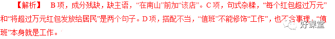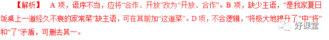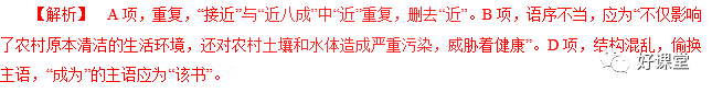【解析】 第②句成分赘余。第③句成分赘余。第④句语序不当。第⑤句成分残缺。