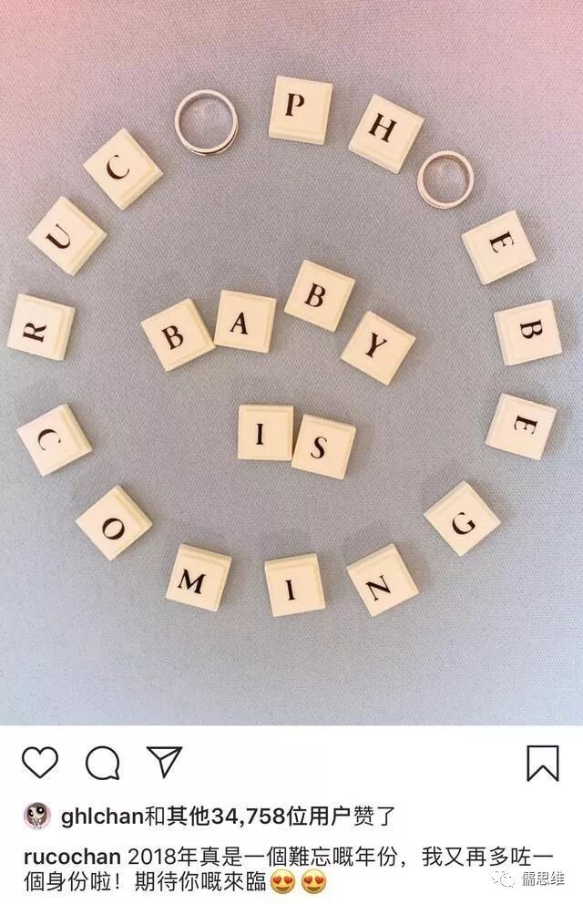 他们夫妻俩先后在社交网报喜,宣布明年做猪爸妈。展鹏同单文柔好有心思,他们在社交网贴出「Baby is coming」拼字图宣布喜讯,图中更有佢哋两人英文名,当中的O字则用了婚戒。陈展鹏留言:「2018年真是一个难忘的年份,我又再多了一个身份啦!期待你的来临。」即将为人父兴奋心情表露无遗。随即引来大批粉丝及网民的祝福,不过目前二人暂时未公布BB的性别。