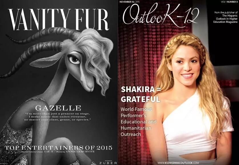 迪士尼听从了她的建议,于是有了现在S型的夏奇羊。她在采访中表示,让瞪羚拥有曲线并不只为了更像自己,也是电影理念的一种表达。