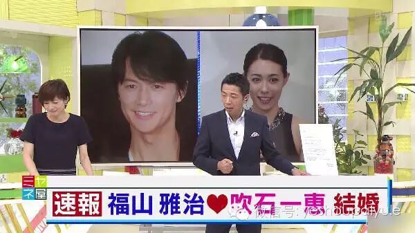 46岁的大叔和33岁的妹子曾经在2011年传过绯闻,吹石一惠曾在一个月之内四次被目击进入福山大叔的家里,不过当时双方都否认传闻,过了漫长的四年,终于走到了一起。