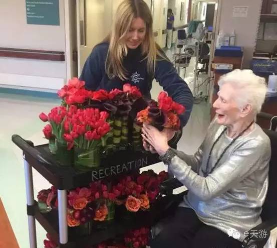 康复院的病人,收到花束也欣喜万分。