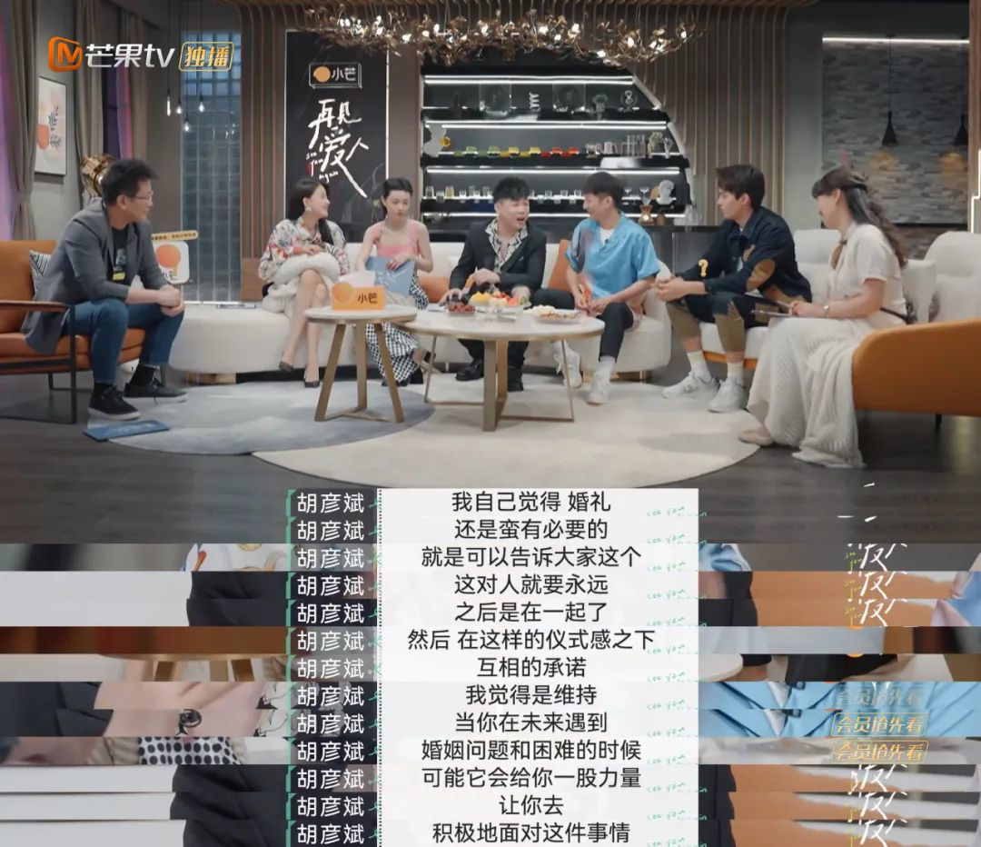 (当时在场的胡彦斌还扎心提示:我觉得婚礼很有必要,是一种承诺,让你在未来婚姻里面对困难和问题时得到一种力量)