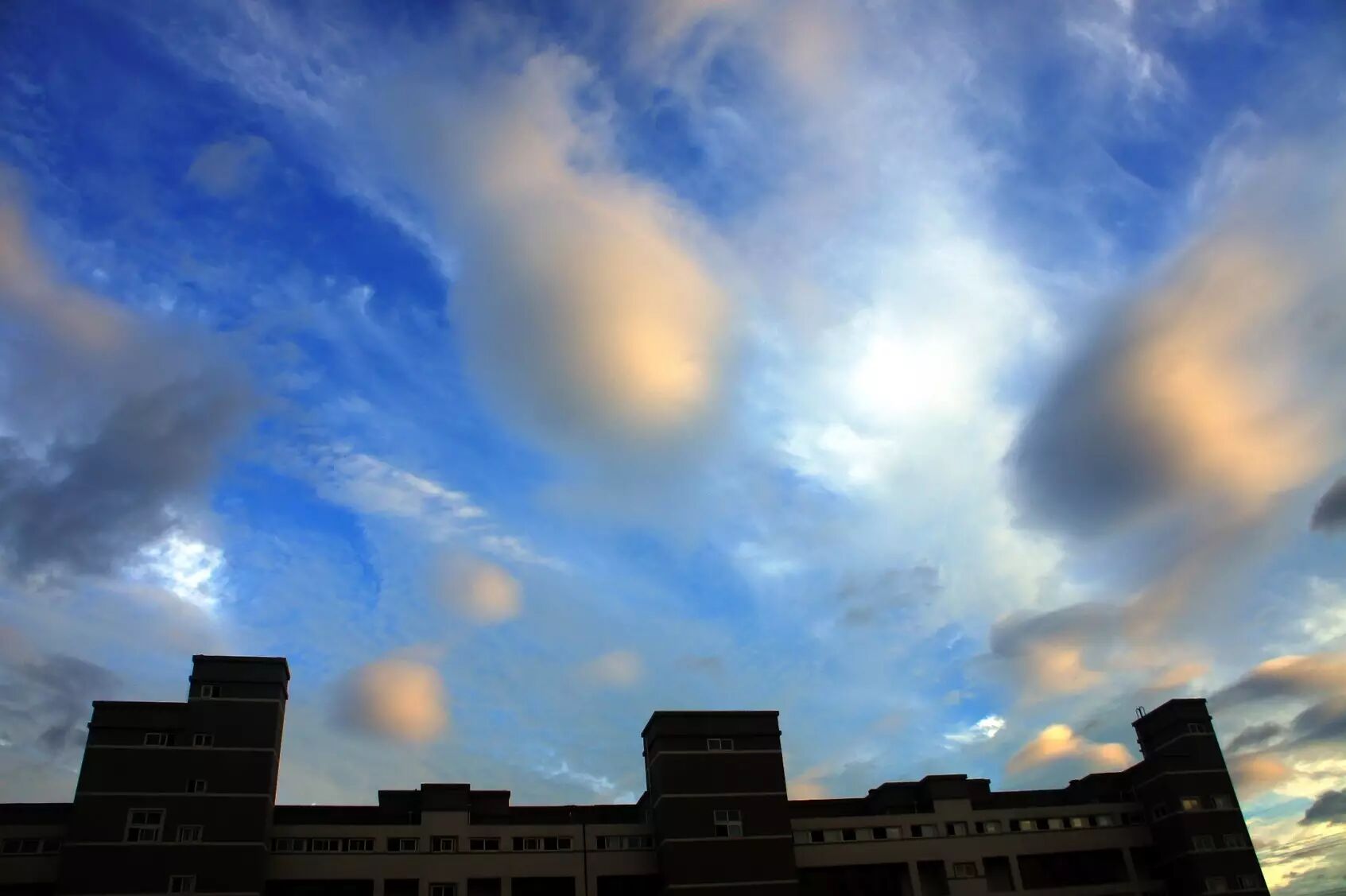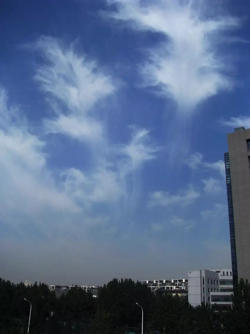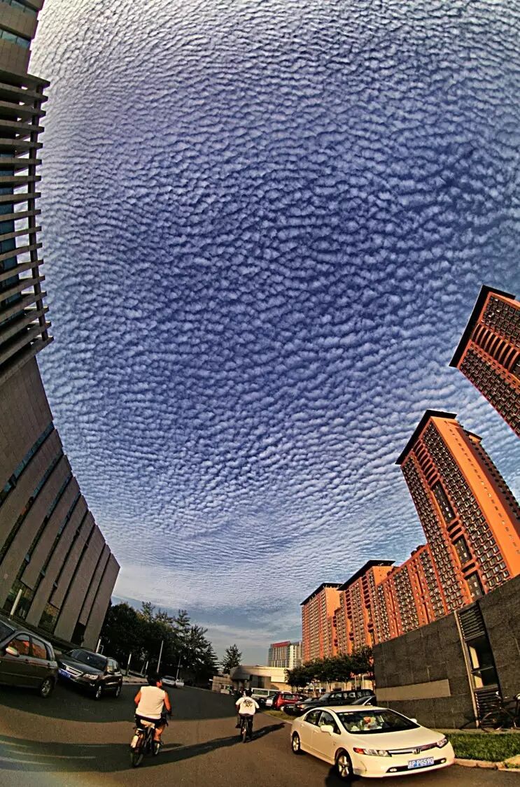 还有的时候漫天铺满了鱼鳞状的云彩,真的不是传说中的地震前兆,只不过是冷空气来了或者走的时候的样子。