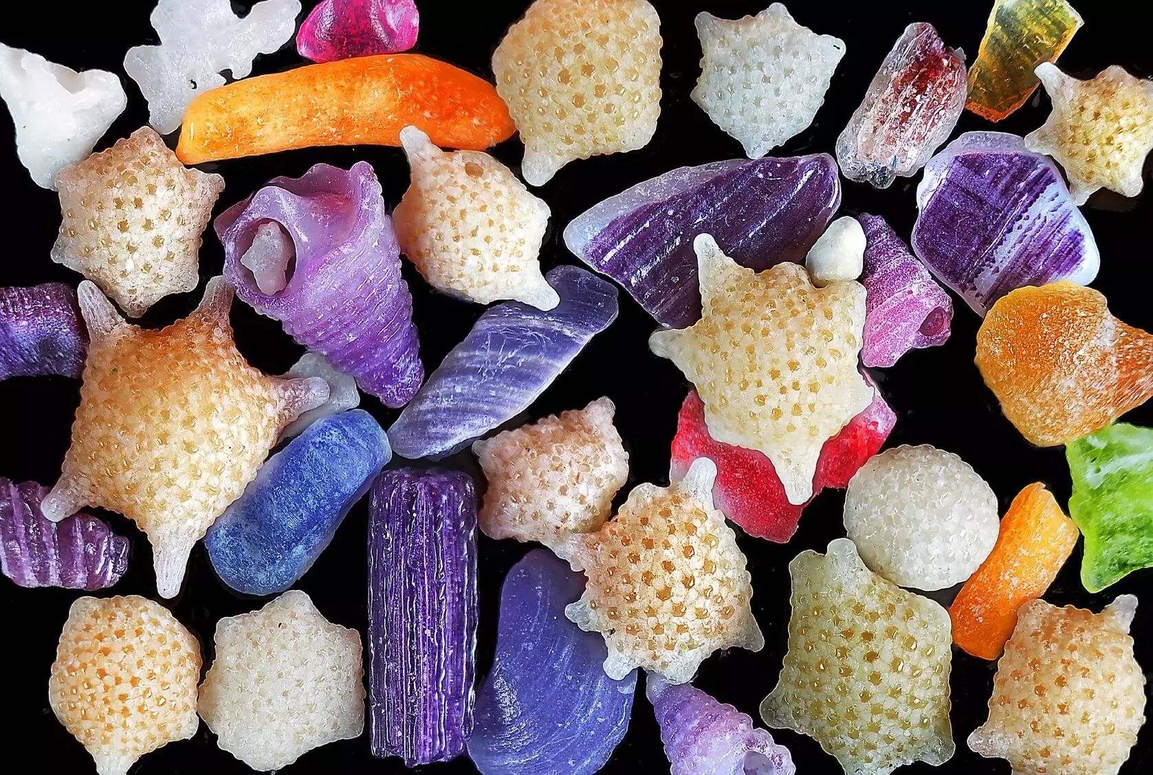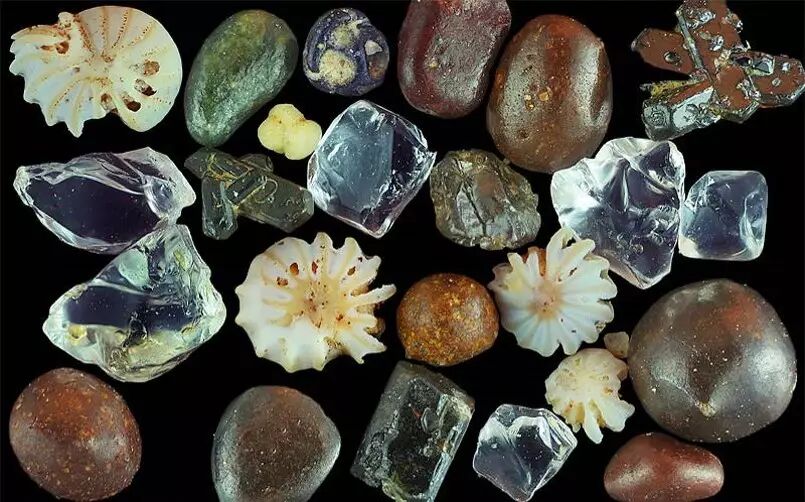 当然还有些沙子呢它们可能不像这么珠光宝气,比如来自日本冲绳的沙子,像小星星像太阳一样,传说中的星砂,一种海洋有孔虫形成的,这个沙子不太好得到,有些地方沙子作为一种特殊的资源,它是需要保护的。