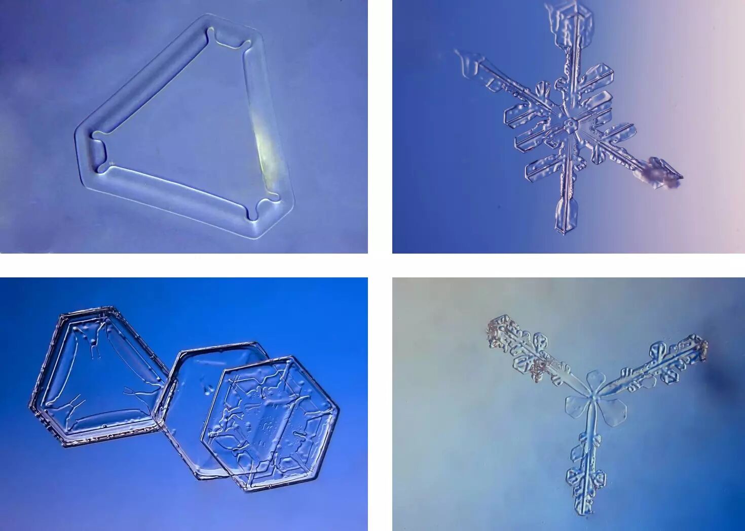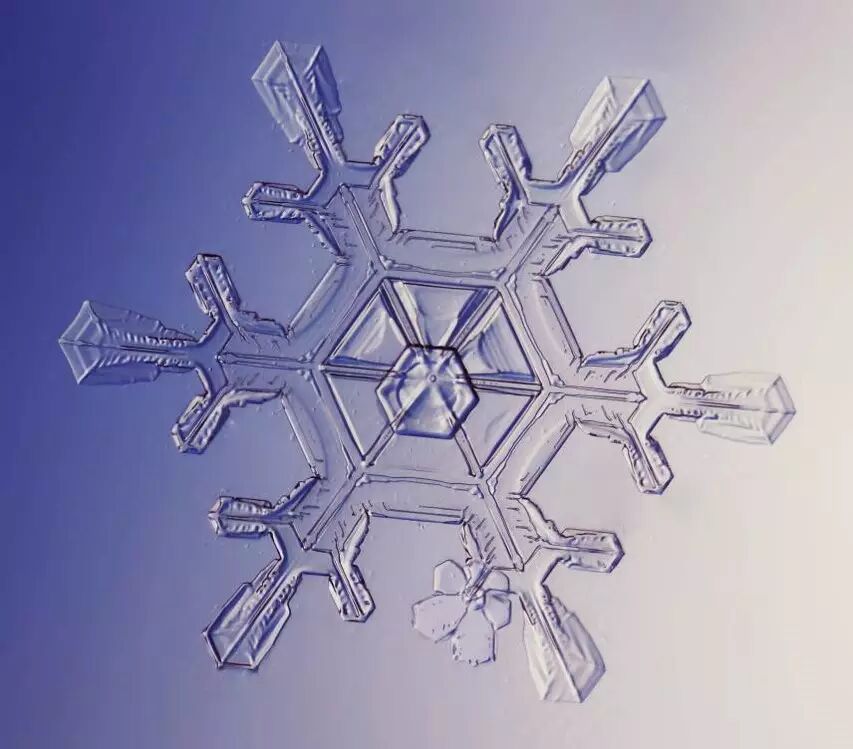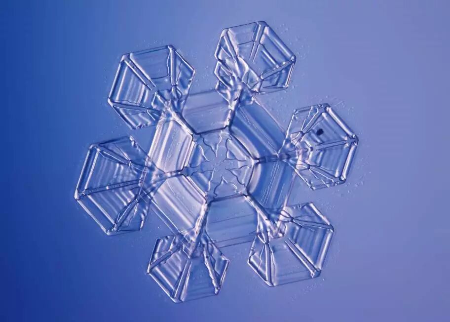 其实雪花不都是六个角,有的就是糖三角,四瓣的雪花也有的,非常少见。