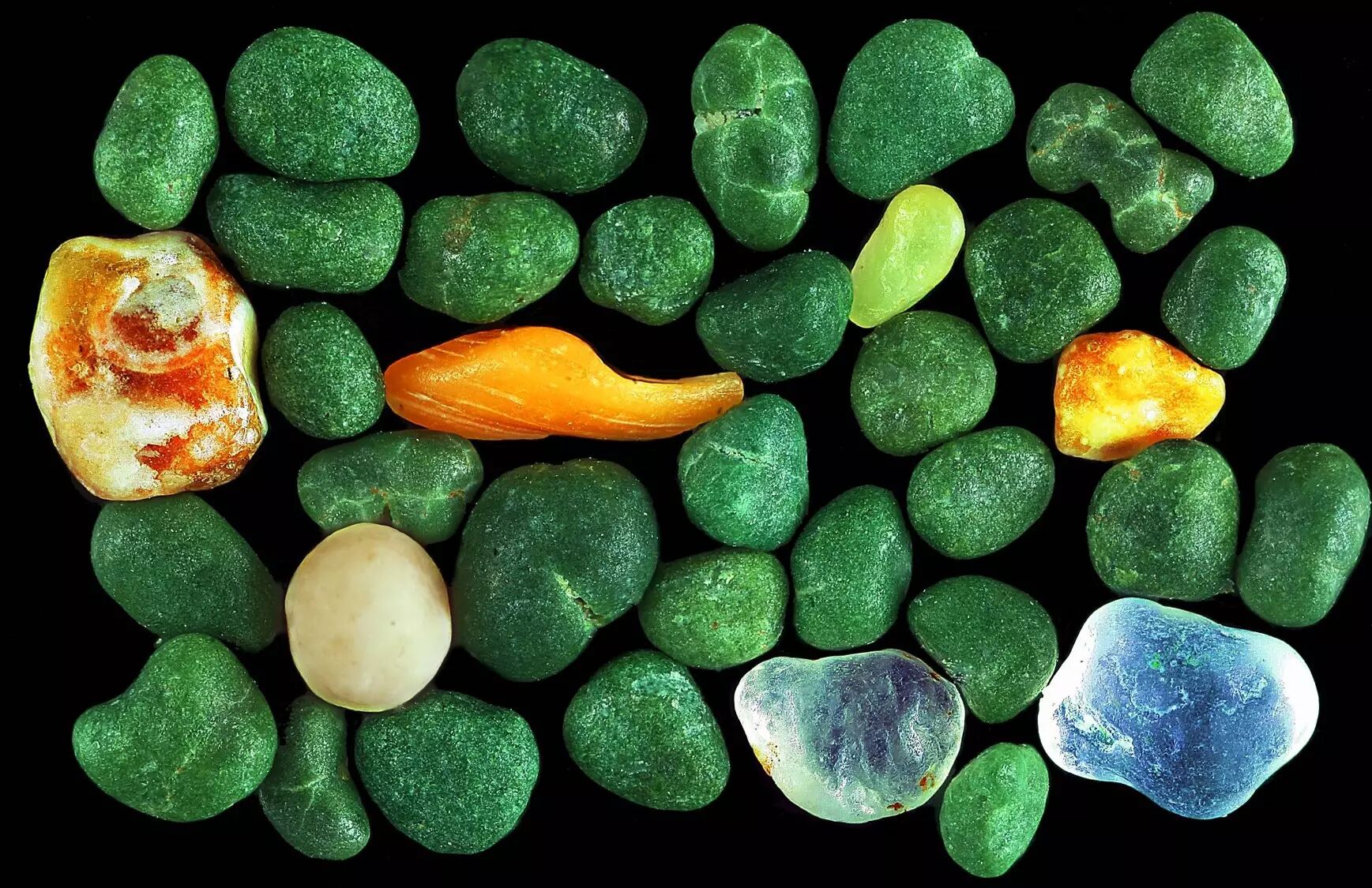那么同样彩色的沙子在西藏湖边也有,碎裂的石英砂。