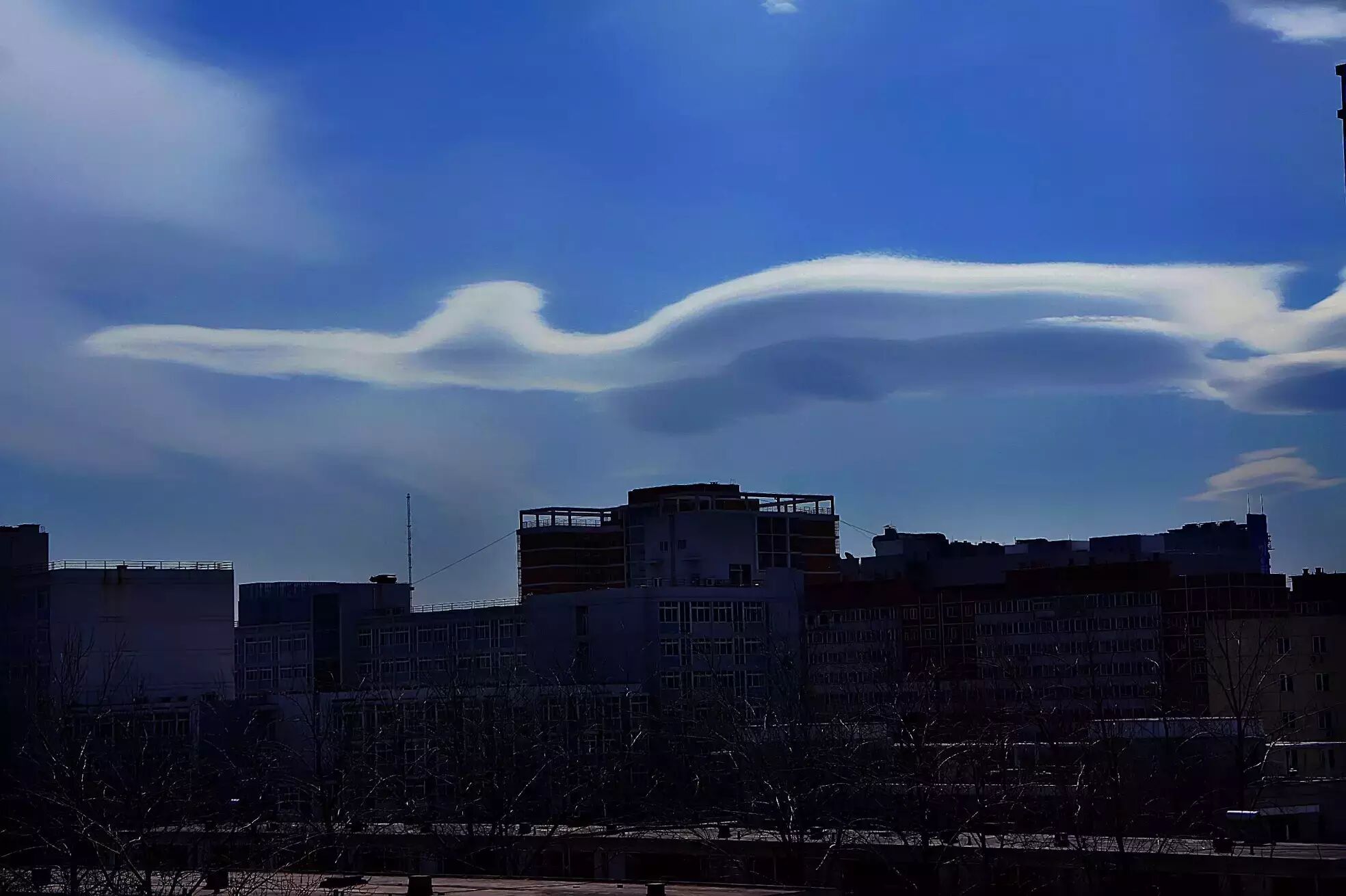 有时候这云彩长得比较可爱,比如说这就是一种叫荚状云的东西,北京有是因为北京有山,冷空气一过来之后形成波浪,就能形成这个东西。