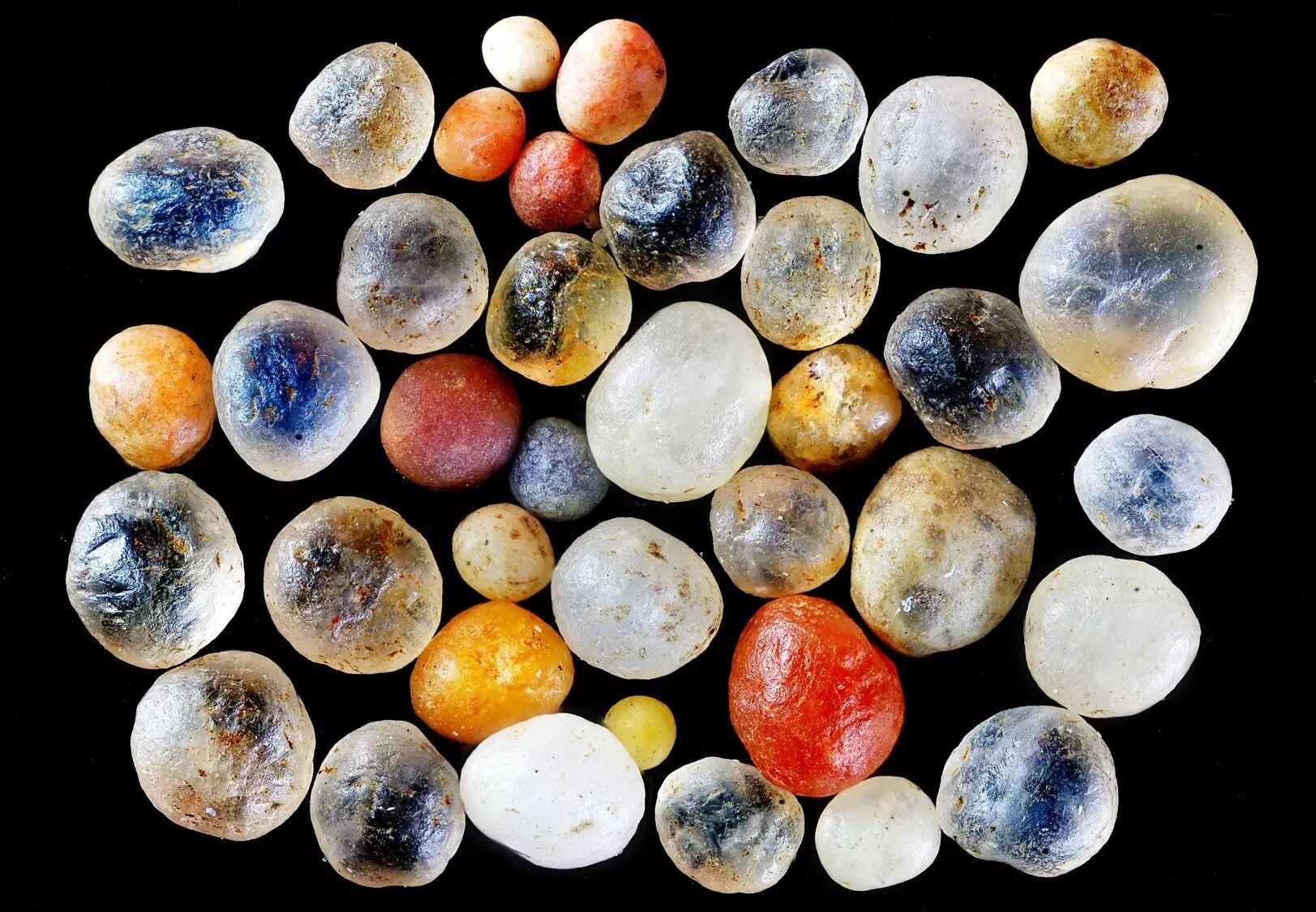 那么有的地方的沙子比较粗糙,还没有怎么经过打磨,所以还有一些晶体结构存在。