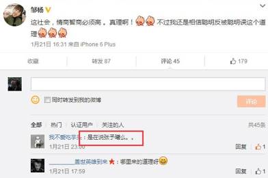 当时邹杨与张予曦两人也是互相关注的,经过这件事也互相取关了,邹杨还把两人在INS的互动全部都删掉了,接下来的事情大家应该都知道啦:张予曦插足邹杨成功(应该是八月份中旬)——张予曦与王思聪被爆恋爱(2014年12月20日)——邹杨点赞网友微博(2015年1月18日)张予曦被甩(2015年1月21日)——邹杨微博话中有话疑是反讽张予曦(2015年1月21日)