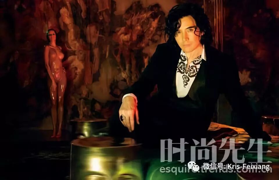 在夸张、复古和华丽的欧式又带有舞台剧色彩的场景中,那具被燕尾服包裹着的身体散发出来的性感竟也是如此强烈,几乎让人脸红心跳到不敢直视。是为什么??眼神,又是眼神。 完全没有轻佻的表情,反而很严肃,很冷酷。 眼神却那么慵懒,魅惑,那么勾人魂魄,只望一眼,便无法自拔。 记得有人说性感是一种气质,有的人衣着端正,但是他只是坐在那里便连呼吸都是性感的。 与两个赤裸,周身散发诡异光彩的女模特无关。 的确如此,性感到极致却丝毫不显得低级,只有费翔让我有这样的感觉。